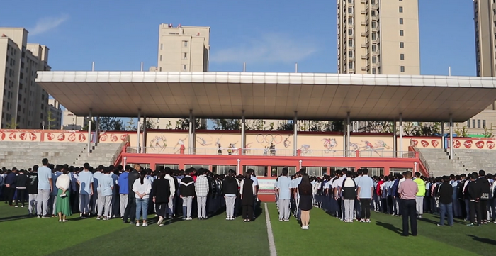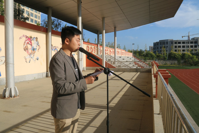 校团委孙鹏书记对学生开展了新时代爱国主义教育,他号召同学们要厚植爱国主义情怀,争做新时代学生楷模,热爱和拥护中国共产党,立志听党话、跟党走,立志扎根人民、奉献国家,为祖国发展繁荣而自强不息、不懈奋斗。随后全体师生齐诵《少年中国说》,少年智则国智,少年富则国富;少年强则国强,少年独立则国独立......美哉我少年中国,与天不老!壮哉我中国少年,与国无疆!一句句朗诵震耳发聩,响彻云霄,振奋人心。全体师生用饱含深情的语言、铿锵有力的声音,抒发了对祖国历史的缅怀之情,有力地表达了对祖国美好未来的期待之情。