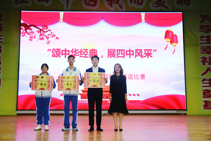 共诵中华经典,聆听古诗书韵,深情的诵读、饱满的情感、精彩的表演,这不仅是一场比赛,更是对青春的自信,对祖国的赞美,对母校的热爱。在校庆60周年之际,作为青年的四中学子,深知少年强则中国强的重任,相信他们会用自己的奋斗为祖国、为四中未来的发展留下浓重的一笔。