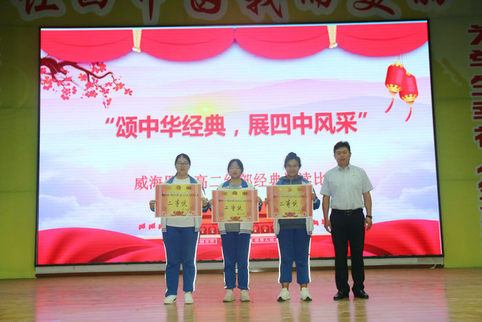 在诵读过程中,同学们字正腔圆,高声朗诵;他们激情昂扬,意气风发;他们多才多艺,创意无限,为现场观众奉上了一场感动的视觉和听觉盛宴。古筝、书法等多种手段,传颂经典,既诠释了对传统文化的理解,又抒发了爱国主义情怀,精彩展现了中华经典音、形、意的美。比赛结束时,王伦胜副主任总结到,同学们多才多艺,大放光彩,充分展示出了2019级奋发向上的精神面貌,此次经典诵读重在传承经典,构建四中书香校园,增强同学们的文化自信。