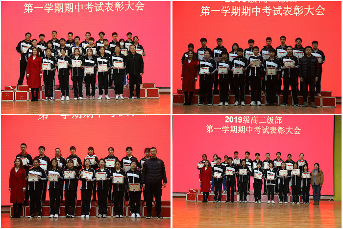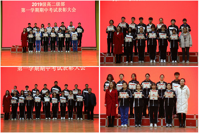 为了表彰先进,端正学风,通过树立典型引导学生见贤思齐,审时度势,成就最好的自己,11月26日下午高二级部召开期中考试学生总结表彰大会,王伦胜副主任主持会议,王玉洁校长为受表彰的同学颁奖并分享幸福感言,桂新光主任做分析总结报告。