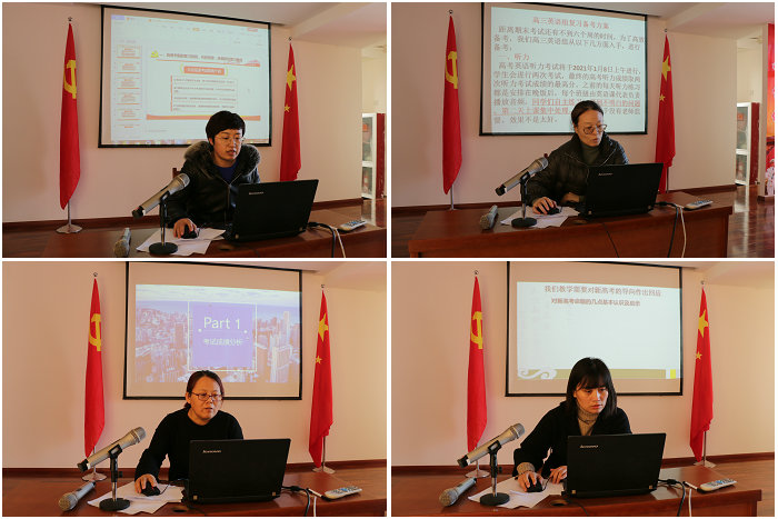 会议伊始,备课组长和来我校支教的威海二中邹颖老师、宋召华老师,结合前一阶段各组教学情况及此次考试中存在的问题,分享教学方法与心得,同时交流了下一阶段的教学安排。语文组的徐春云老师结合一轮复习情况对期末复习策略进行交流;数学组的房丽静老师强调强化课堂主阵地,切实提高课堂教学质量;英语组的于春香老师从听力、阅读理解等题型详细分享了复习备考方案;物理组的王华玲老师结合本次考试存在的问题,介绍了最后一个月的计划安排;化学组的张蕾老师立足课程标准,结合高考题,求真务实,精研细实;生物组的倪红霞强调重视基础知识的夯实,强化主干核心内容;政治组的仇丽萍老师强调卷面的重要性,结合问题,找准方向,增强关键能力;历史组的邹颖老师强调确定合适的复习节奏,一轮通史复习,夯基提能;地理组的宋召华老师强调相互交流,共同进步,研磨教法是永恒的主题。