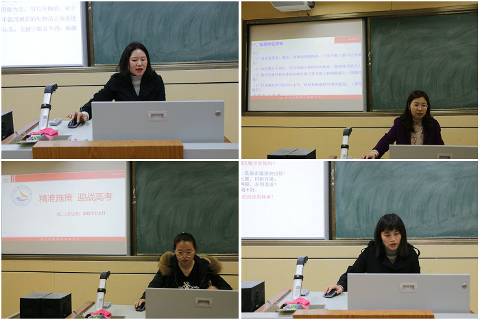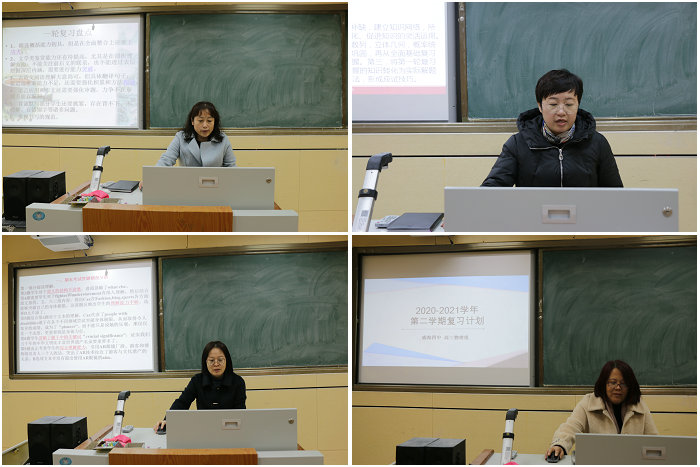 会议伊始,各备课组长结合一轮复习教学情况及期末考试中存在的问题,分享教学方法与心得,同时交流了二轮复习的教学安排及策略。语文组的徐春云老师分专题对一轮复习进行总结,强调精准施教,强化落实;数学组的房丽静老师强调整合知识,构建网络,专题透析,提升能力,专项训练,提高效度;英语组的于春香老师提出要强化时间观念,增强训练的有效性和针对性;物理组的王华玲老师强调要抓好学科基础知识的落实,提高审题能力和解题能力;化学组的张蕾老师立足课程标准,把握高考动态,回扣课本,完善体系;生物组的倪红霞老师强调夯实基础知识,强化主干核心内容;政治组的仇丽萍老师强调关注时事,精选试题,找准方向,增强关键能力;历史组的逄美云老师结合考情、教情、学情制定有效的备考策略;地理组的林均静老师强调重视研究高考题,加强规范答题。