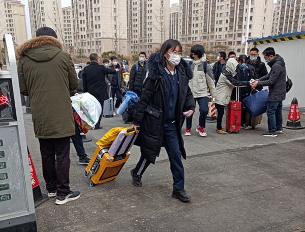 正月十七上午,高一学生返校送物品,教师和学生志愿者组织返校学生佩戴口罩、有序排队、保持安全间隔距离,依次入校。学生入校后先后来到教室、宿舍整理好学习和生活用品,以良好的秩序和精神面貌迎接新学期的到来。