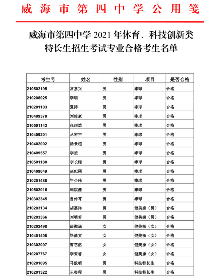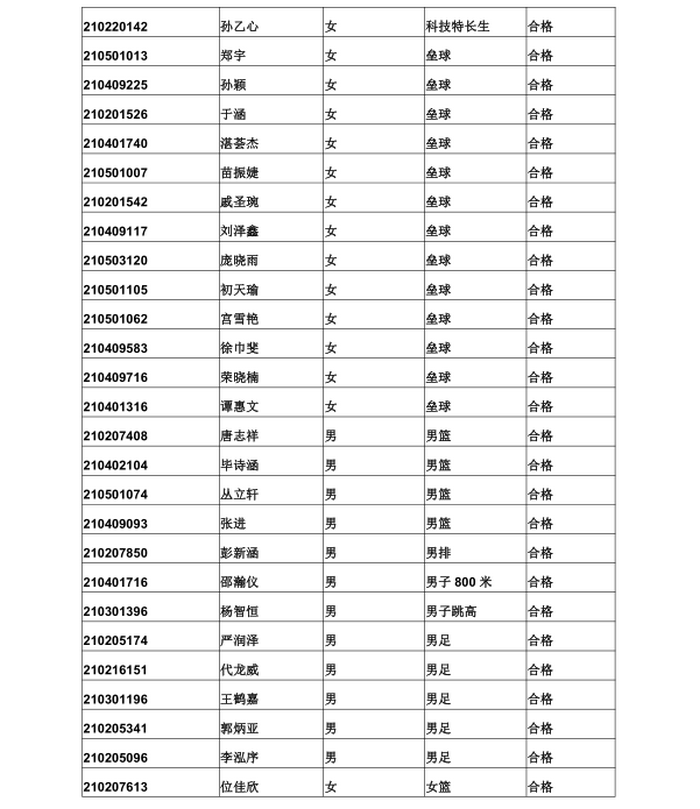 kkpay002021年体育、科技创新类特长生招生考试专业合格考生名单