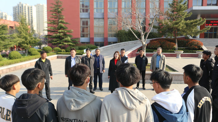 3.校领导为考生鼓劲壮行。4月9日上午,王玉洁校长、于春波副校长、张华超副校长、刘强副校长、于海生主任、谢富强副主任在学校为体育生出征济南鼓劲壮行。临行前,王玉洁校长叮嘱孩子们,一要树立必胜的信心,只有拥有信心,才可能拥抱成功,只有树立信心,才能挥洒自如,超常发挥;二要保持持续的细心,高考凭实力、拼毅力,同学们在考试前要听从指挥,熟悉考试规范,超前做好各种准备,要注意饮食安全和交通安全,考试结束后安全回家;三要以一颗平常心对待高考,要善于自我调节,只有想得越少,遗憾才会越小。希望同学们轻装上阵,用良好的心态迎接考试,考出理想成绩,成就美丽梦想。