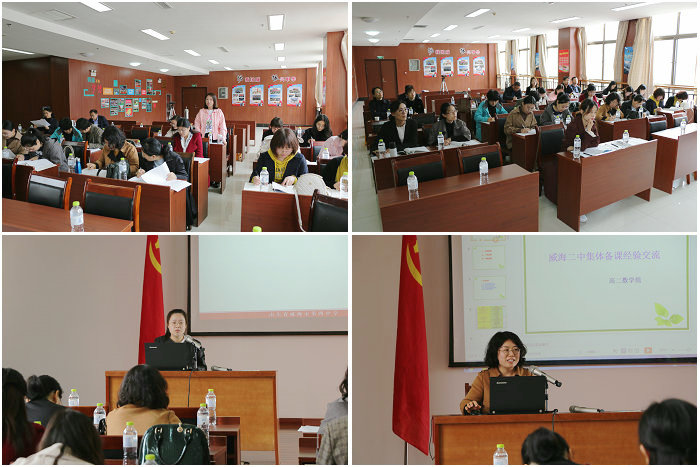 接着是经验交流。kkpay00高二数学组备课组长陈美莎老师从教师层面和学生层面展示日常集体备课的具体做法:通过动态备课、精选习题、每日一练、滚动复习的方法来实现精准教学的目标。威海二中高二数学组备课组长王静老师分享了细致的集体备课方案,养成规矩、恩威并施、分层授课、反思总结的教学手段,以及分层命题考试的经验做法。通过经验交流,彼此互通有无,博采众长。通过交流,与会教师达成立足集体备课,做好单元教学,构建教学模型,实现精准教学的共识。