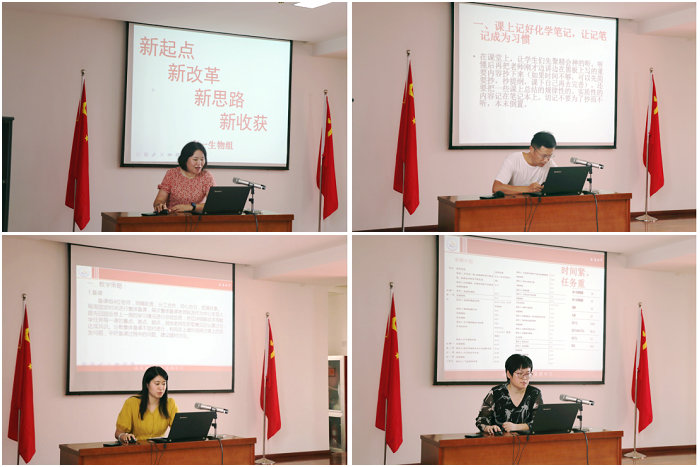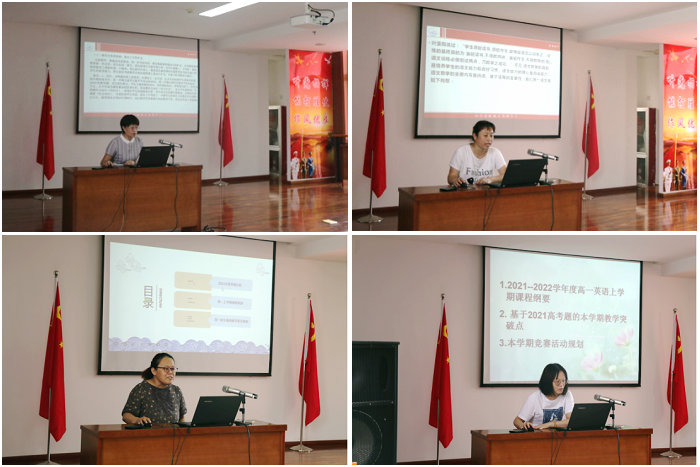 首先高一级部各学科备课组长围绕“钻研+落实”主题,结合新生的学情以及备课组的备课情况,分别从对2021年高考题的研究、新学期的学科竞赛计划以及充分 发挥课堂主阵地作用等几方面进行了交流展示。在交流过程中,各备课组通过对高考题的研究,预估学生在现有能力范围内可以拿到的分数,并以此为目标对新学期的教学进度安排、课堂教学策略的实施做出了详细的计划。