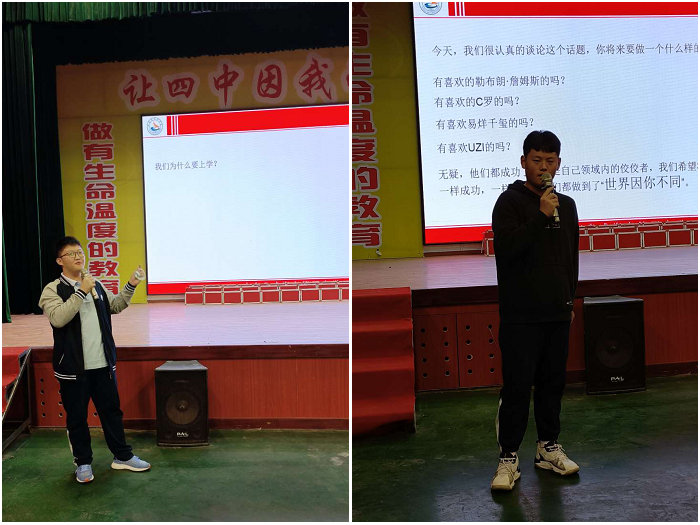 孙鹏副主任进行“世界因你而不同”的主题讲座,在抛出“为什么要上学”及“你的偶像是谁,他有什么品质吸引你”两个问题后,同学们踊跃举手,纷纷表达自己的观点,现场互动氛围十分热烈。孙鹏副主任反复提到自律、努力、坚持和自我挑战等词语,并通过李开复的事例向同学们强调,用勇气改变可以改变的事,用胸怀来接受不可改变的事情,用智慧来分辨两者的不同。