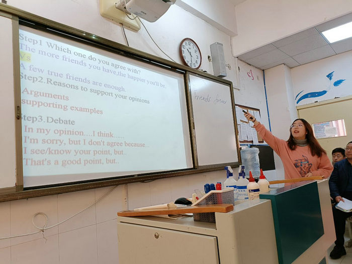 针对体育生文化课课时量少、学习进度慢、学习基础薄弱等学情,范老师围绕“学什么”“怎么学”“学到什么程度”,为学生量身定制“低慢小精”的特色课堂。课中范琬玉老师通过学生朗诵和播放视频等互动形式,充分调动学生的积极性,随后将学生分为两组,就“朋友越多越快乐”和“朋友在精不在多”这一辩题进行分组辩论,在20分钟的辩论环节中,体育班的同学们认真讨论,积极发言,既展示了自我,又培养了能力。