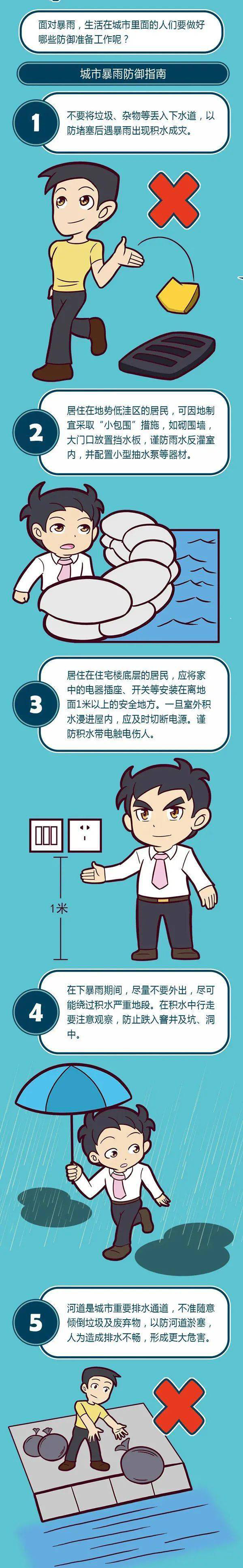 2.不要在下暴雨时骑自行车、电动车,以防摔跤。当汽车在低洼积水处熄火时,人千万不要在车上等候,应下车到高处等待救援。