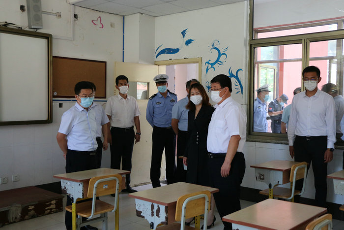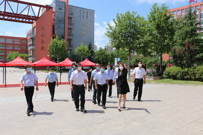 6月15日,临港区党工委副书记、管委会副主任梅延良带领相关责任部门,莅临kkpay00视察2022年中考考点工作,王玉洁校长、于春波副校长、张华超副校长陪同。