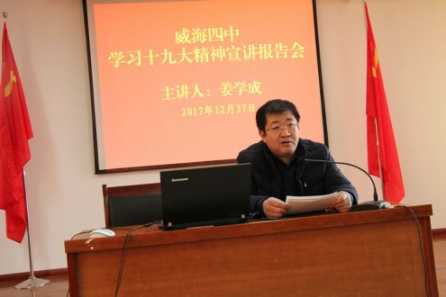 市局班子成员走进我校宣讲十九大精神 2017-12-28为进一步推进我校党建工作和党风廉政建设工作顺利进行,12月27日,市局党委特意委托教育局党委班子成员、市政府教育督导室主任姜学成来我校为大家上了一堂精彩的党课。...