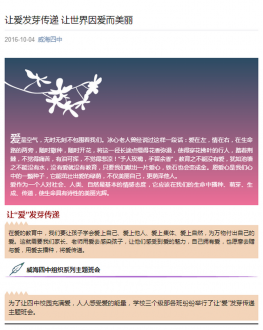 来自高一学生家长的一封信 2016-09-07学校的发展、孩子的培养离不开家长大力支持和配合,近日,学校收到的这封来自高一学生家长的信,字里行间中流露出对学校的肯定,是全体教职工为教育事业拼搏的动力。 来...