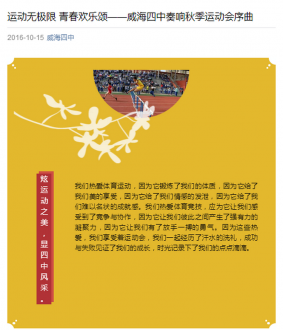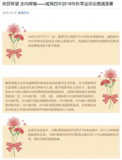 我校在2016年微课评选中再创佳绩 2016-10-14在2016年上半年威海市市直普通高中微课评选中,我校共有45节微课获奖,占市直微课获奖总数的28.8%,位于市直高中前列。其中,一等奖13人次,二等奖14人次,三等奖18人...