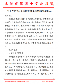 关于发放2019年秋季减免学费的情况公示 2019-11-07 -